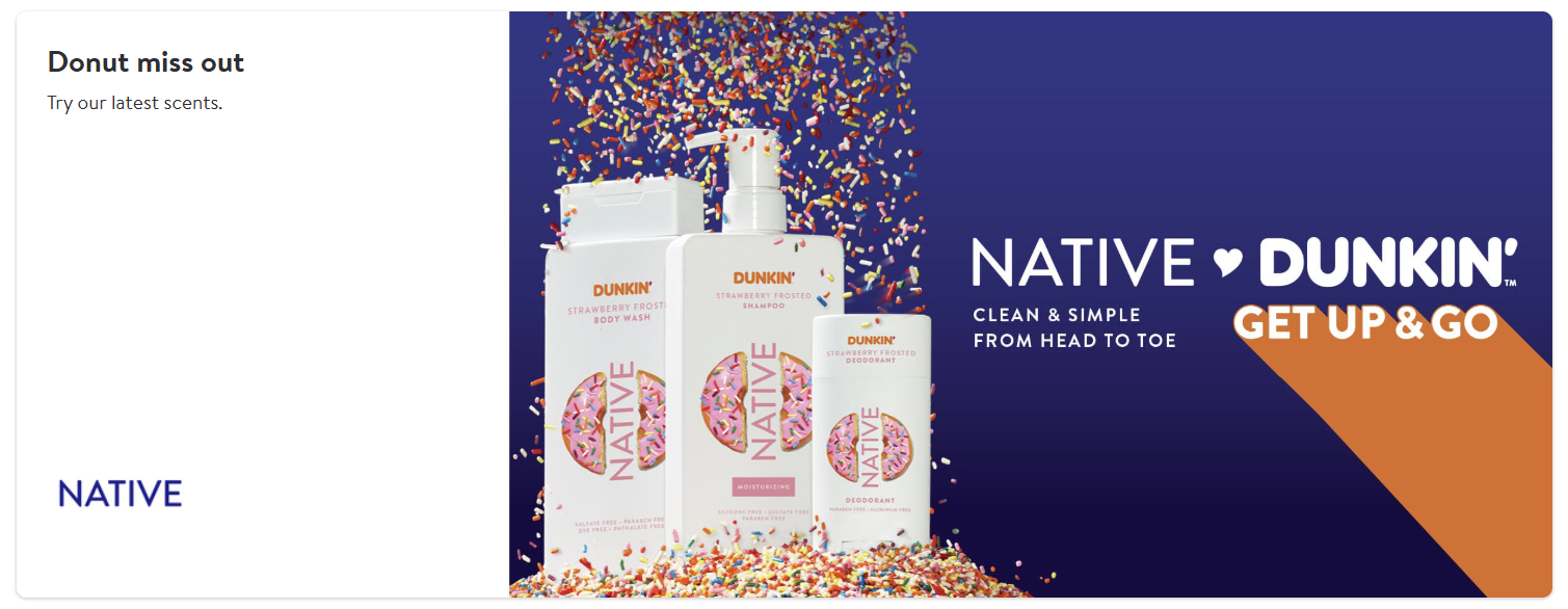 Walmart Brand Shop for Native featuring the sweetest collab of the year with Dunkin.